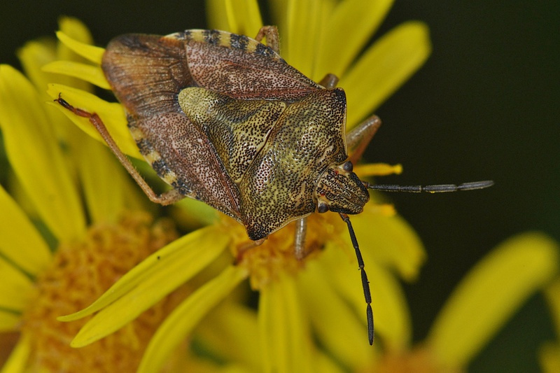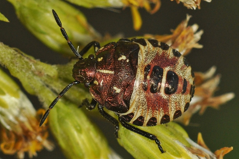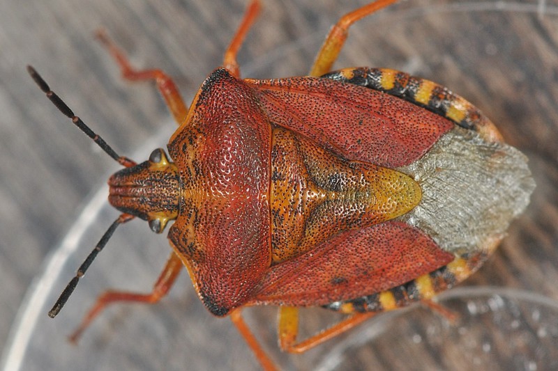 Kopf, Pronotum und Scutellum oft mit Flecken und Streifen schwarzer Poren;